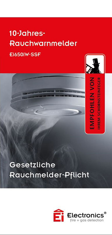 Unser Konzept zur Installation und Vermarktung des Rauchwarnmelders Ei650iW-SSF richtet sich speziell an das Schornsteinfeger- und Kaminkehrerhandwerk. Dieses hochwertige Produkt wurde mit über 50 Jahren Erfahrung von Ei Electronics, dem europäischen Marktführer für Rauchwarnmelder, entwickelt.